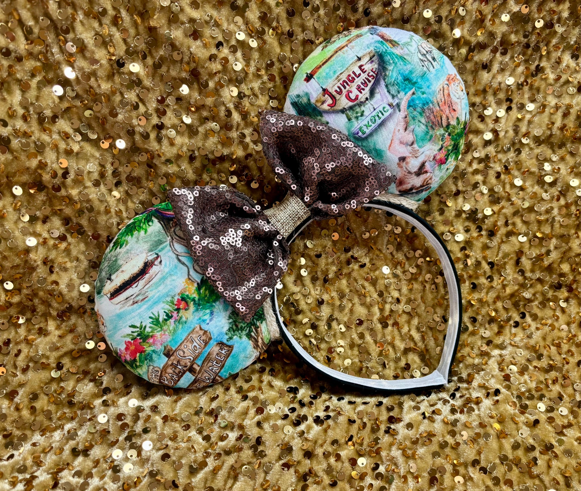 Jungle Cruise Mouse Ears – Magic Kingdom Safari Inspired Handmade Disney Headband | Brown Sequin Bow