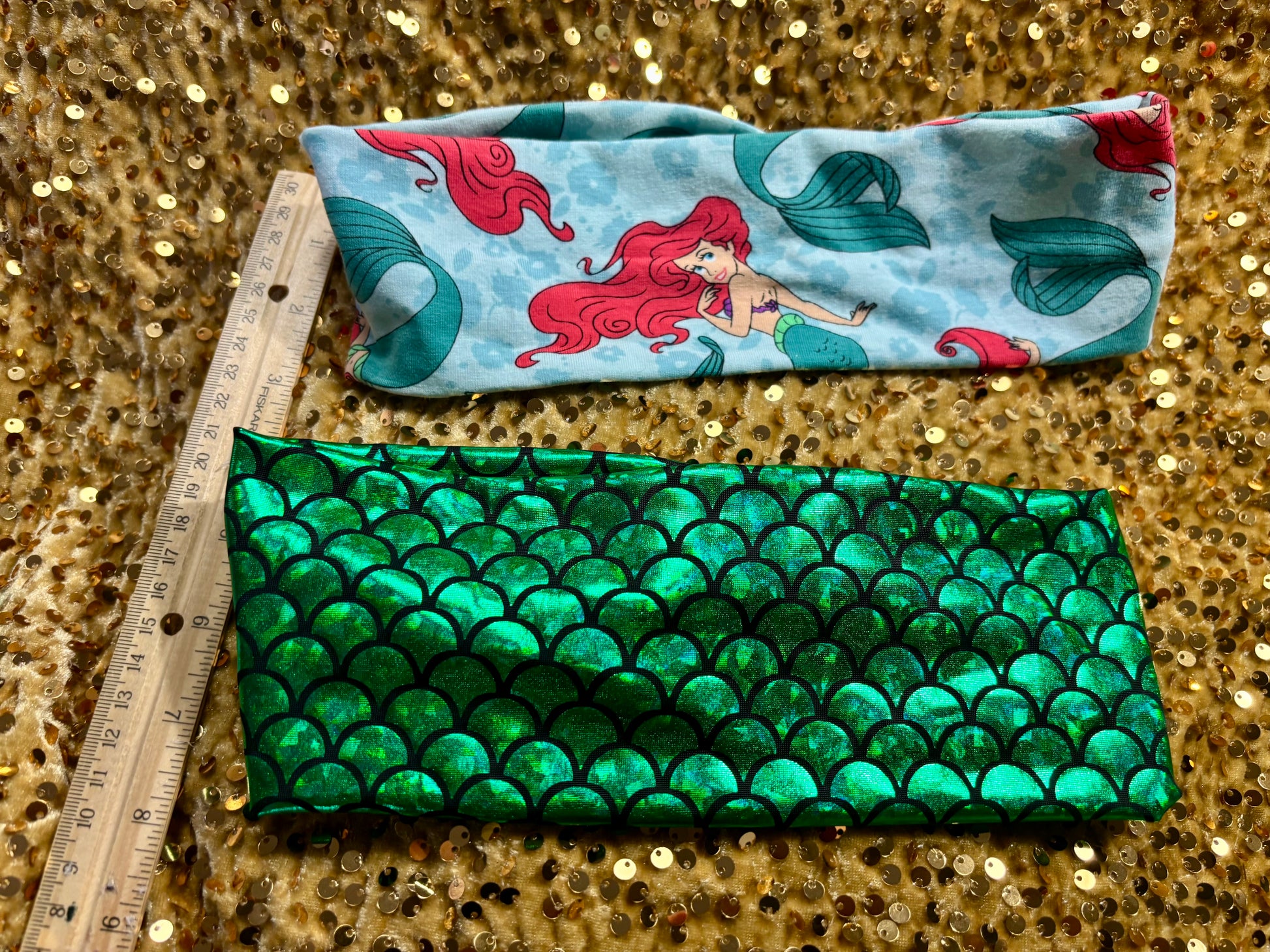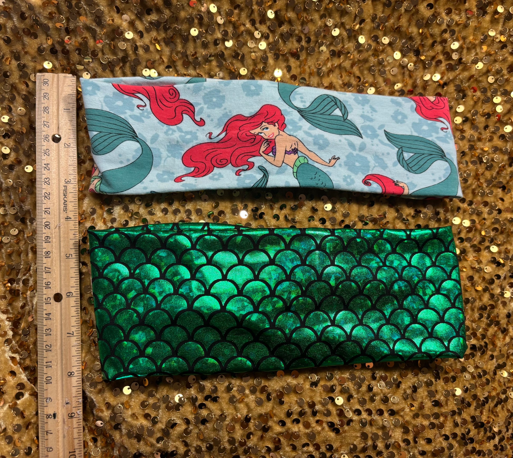 Made for Little Mermaid fans and mermaid lovers! This handmade 5-piece bundle includes 2 twisted headwraps and 3 beautiful headbands, all featuring stunning Ariel and mermaid-inspired designs. Everything you need to channel your inner mermaid at the theme parks or anywhere!