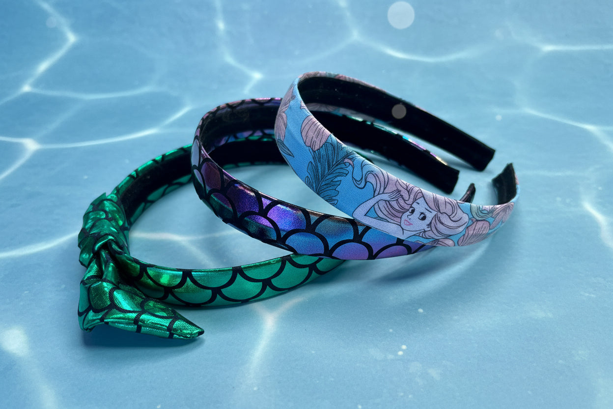 Five coordinating pieces at a great value! Mix and match the headwraps and headbands to create different looks for every outfit and occasion. The variety of designs — from iridescent scales to Ariel prints — means you'll always have the perfect mermaid accessory.