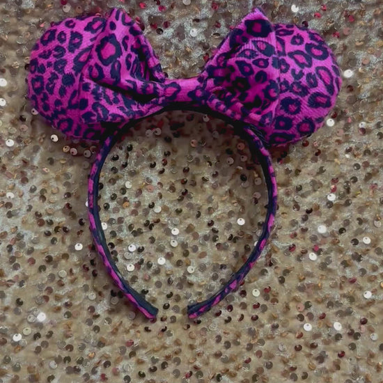Pink Leopard Mouse Ears Headband | Animal Print Disney Ears | Handmade & Ready to Ship