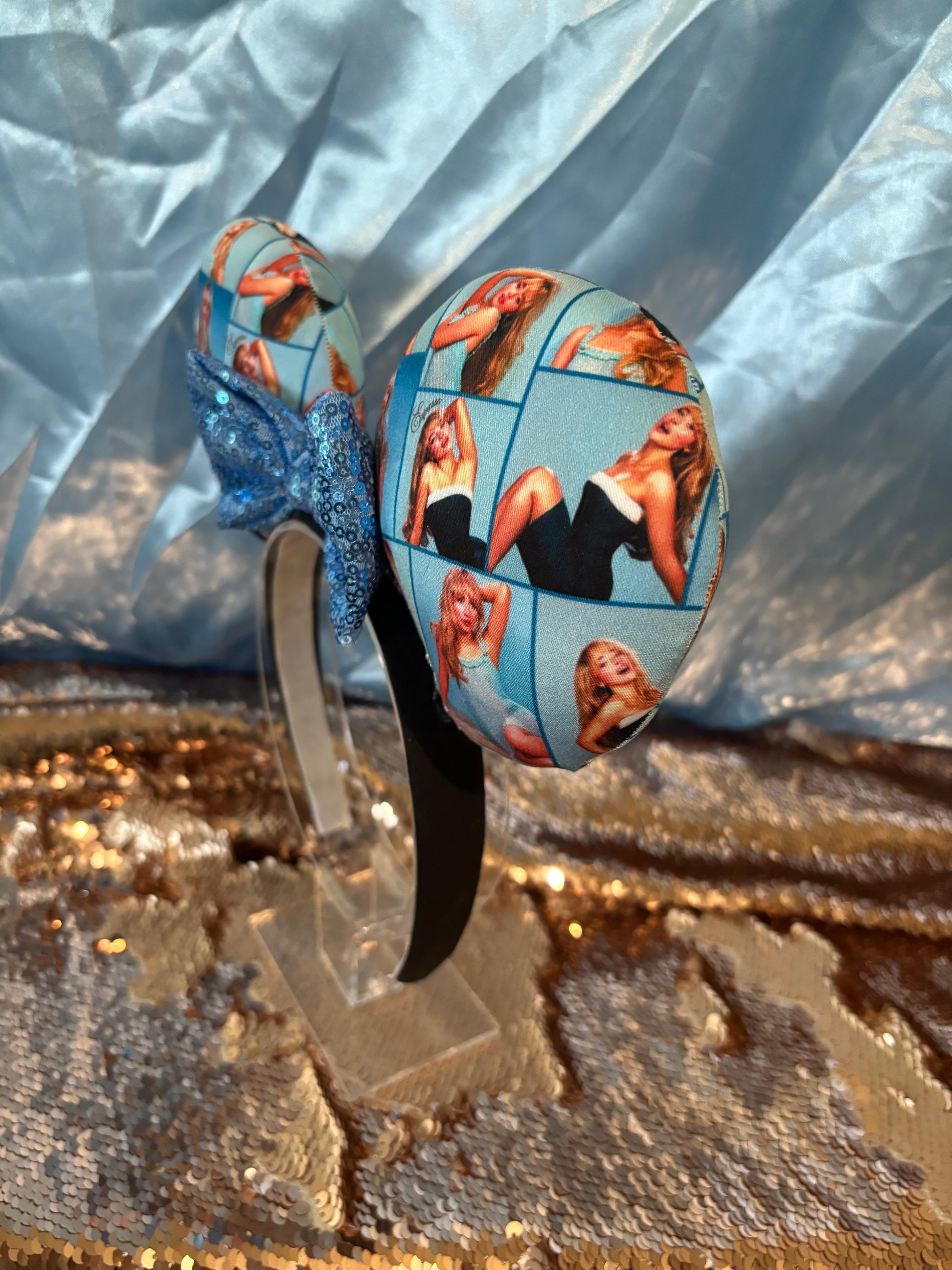 - Blue sequin bow for a pop of sparkle