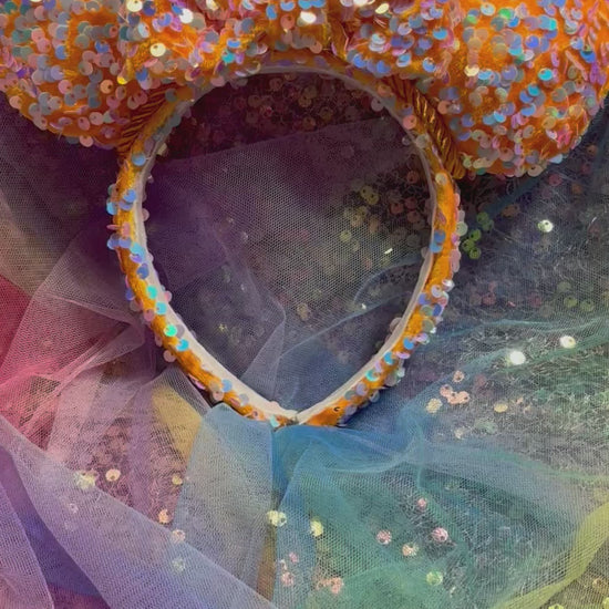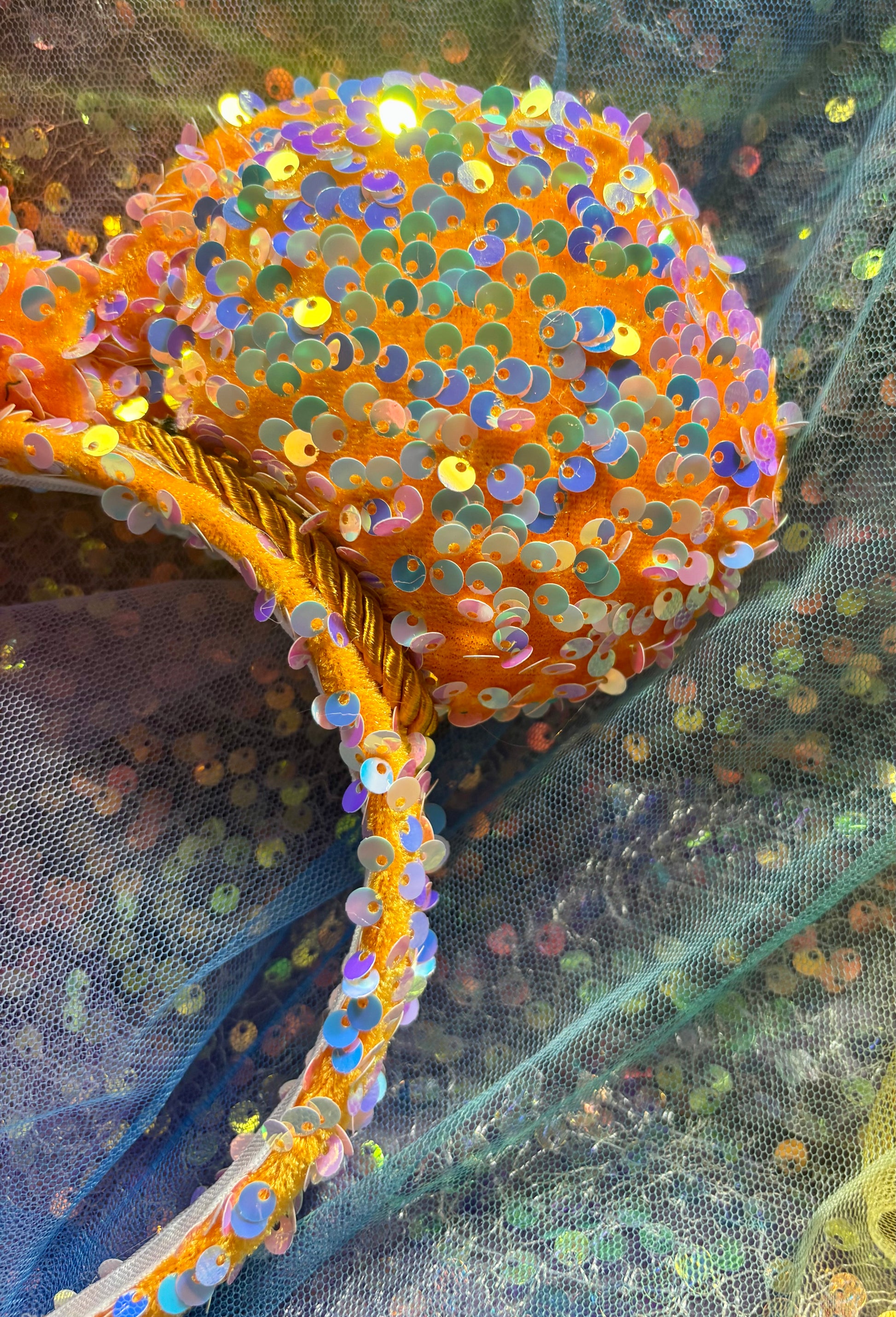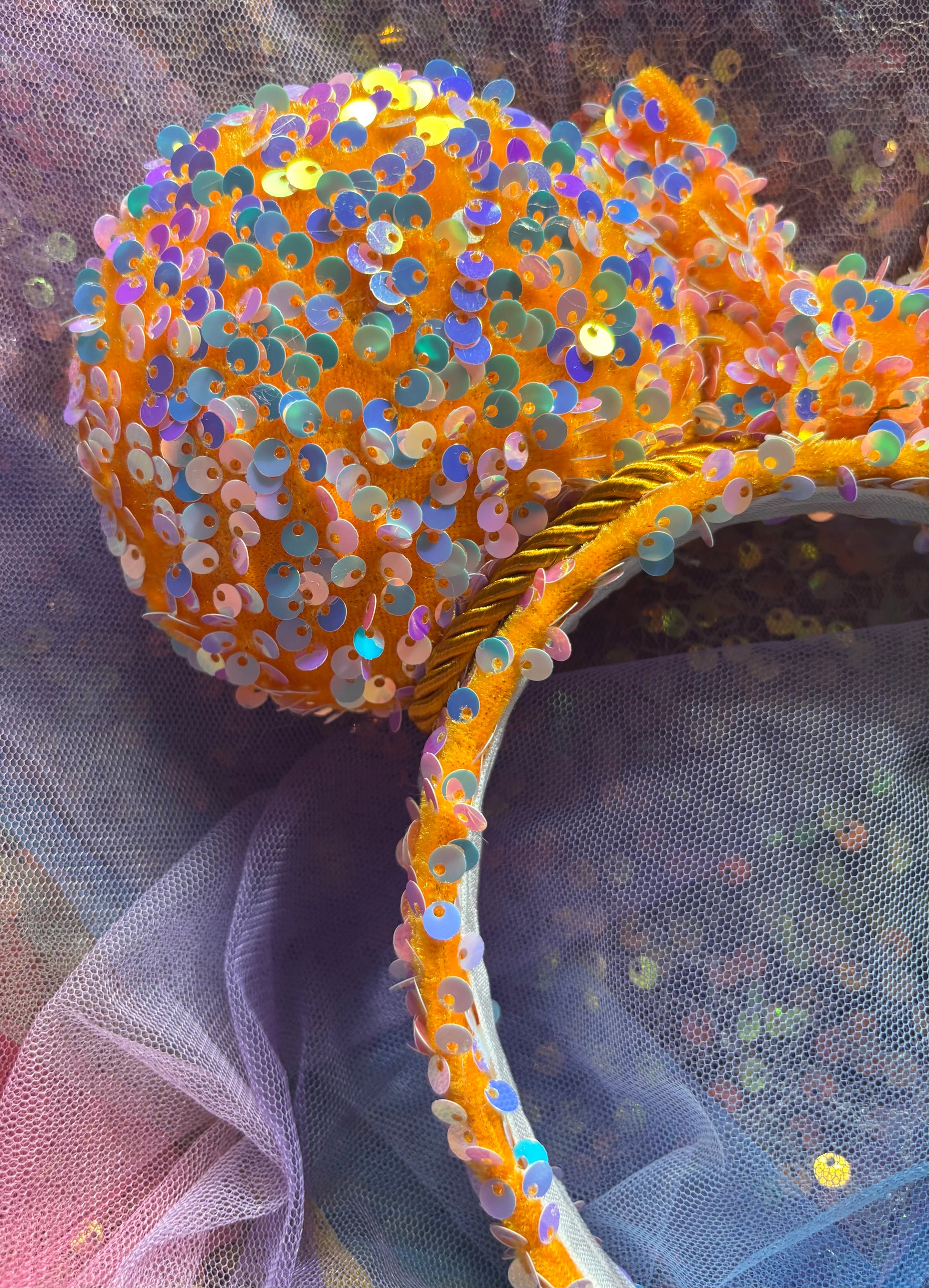 Orange Velvet & Mint Sequin Mouse Ears | Showgirl Era Deluxe Theme Park Headband