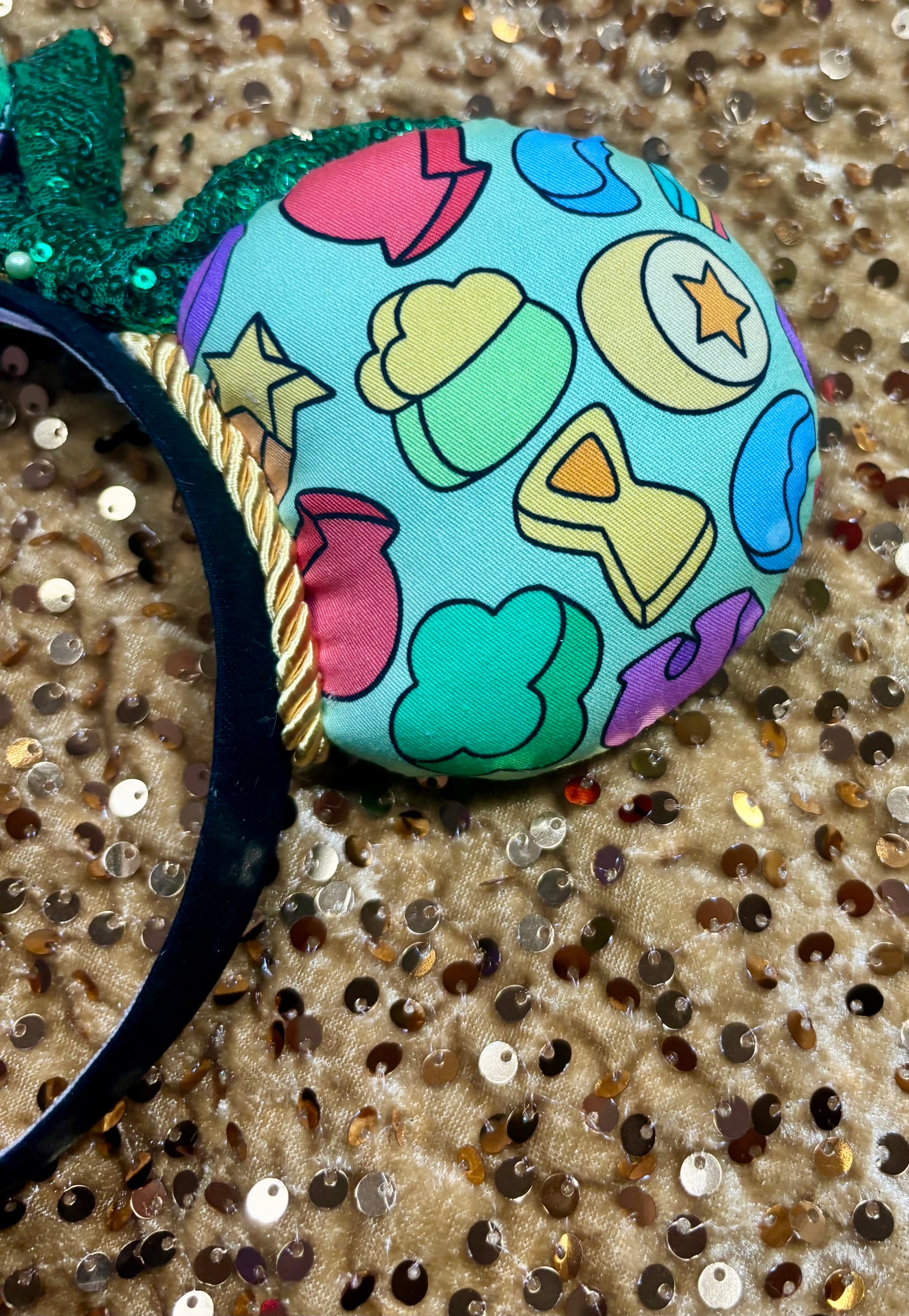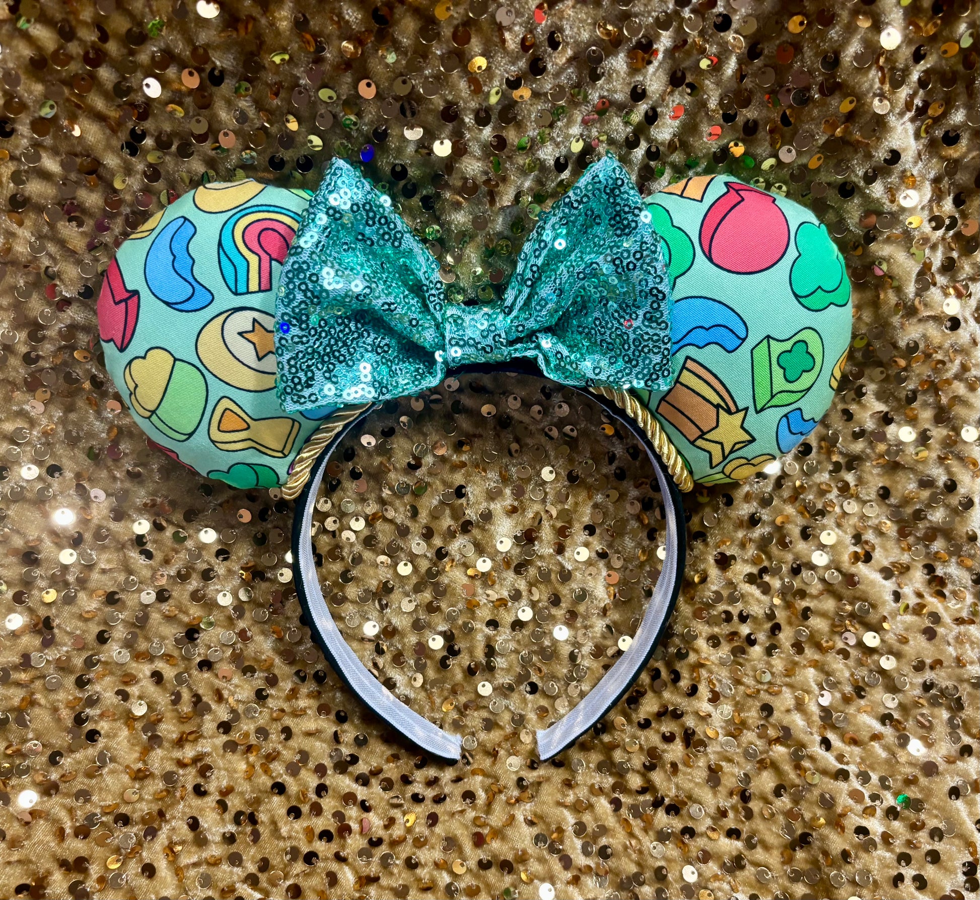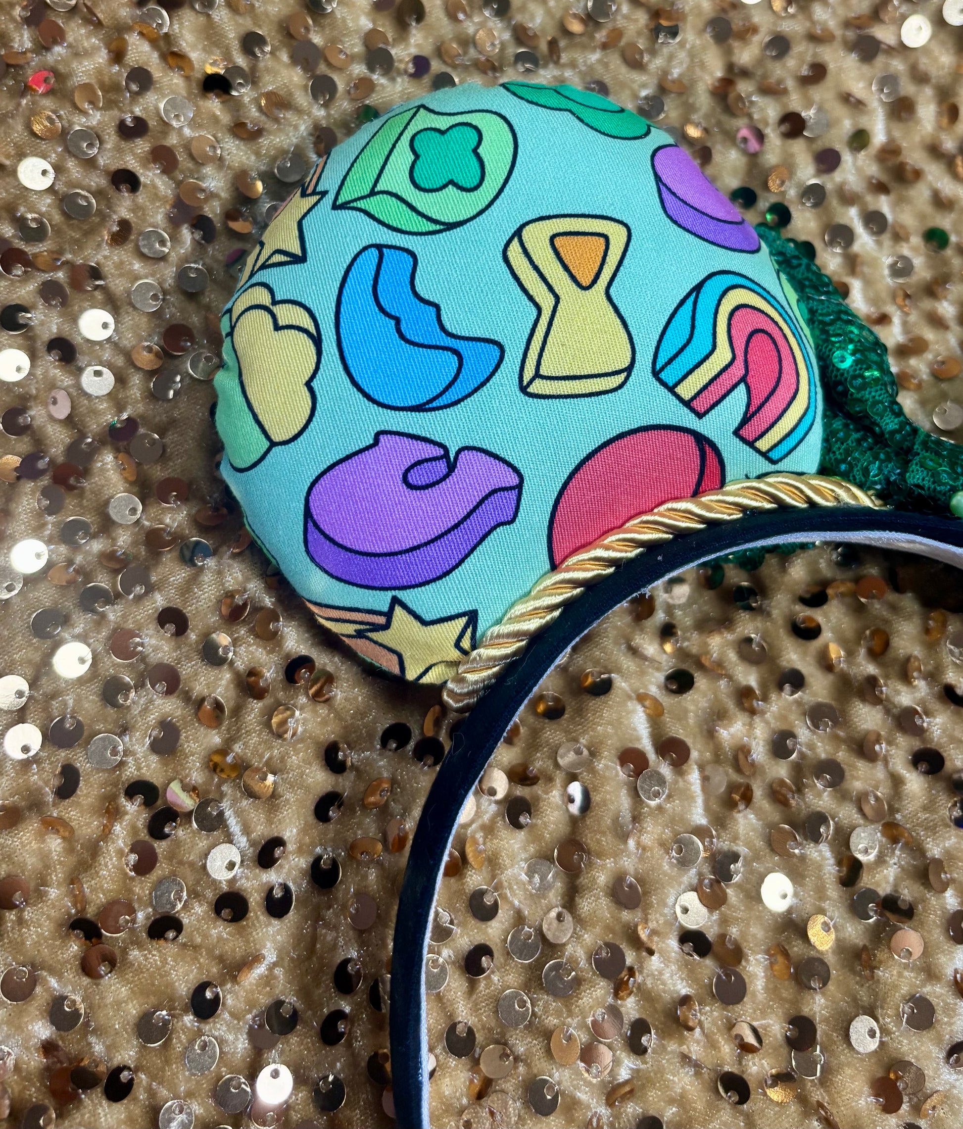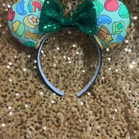 Don’t forget to wear your green this St Patrick’s Day! Fabric is on ears front and back and black fabric on the headband. Gold Twisted trim along inner ears with a green sequin bow. Elastic on inner headband. The headbands are universal sized and fit most. The ears are sewn, hot glued to headband and then handstitched to headband for extra protection!!! 🫶🏻 if you’d prefer a color other than the green sequin, please message me or write me a note in your order and I’ll happily attach it for you. I have most color of sequin bows.